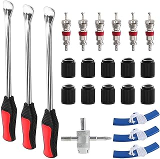 Holres Reifenheber Reifen, 3 Stück Reifen Montierhebel 300mm mit Demontagewerkzeug, Reifenschutz, Ventileinsatz, Reifenmundkappe, Schwerlastreifen Reifen Wechseln Werkzeug für Motorrad Fahrrad Reifen