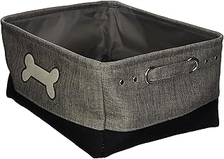 Winifred & Lily Pet Toy and Accessory Storage Bin, Organizer Storage Basket for Pet Toys, Blankets, Leashes and Food in Embroidered Dog Bone, Grey/Black