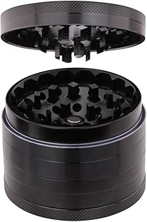 DCOU Neues Design Premium Aluminium Schleifer 2.5 Zoll 4-teilig Schleifer mit Pollenfänger Exklusives Mahlwerk Mühle (Schwarz)