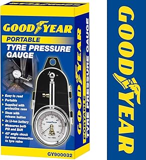 Goodyear Professioneller, robuster Reifendruckprüfer mit großem Zifferblatt, Luftmessung, PSI/BAR Auslöseknopf für Auto, Motorrad, Fahrrad, Van, LKW