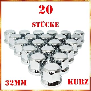 Promo Link 20x Tief Universelle LKW Radmutterkappen 32mm Schlüsselweite Anhanger Auflieger Chrom