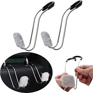 Bling Auto-Kleiderbügel, 2 Stück, handgefertigt, Strass, Kristall, Organizer, Sitz-Kopfstützen-Haken, stark und langlebig, Rücksitz-Aufhänger, Aufbewahrung, Universal für SUV, LKW, Fahrzeug (Silber)