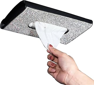 VANJUNN Bling Auto Taschentuchbox Halter für Sonnenblende, Auto Sonnenblende Taschentücher Serviettenhalter mit Bling Kristall Diamant, Leder Rücksitz Papierhandtuchhülle